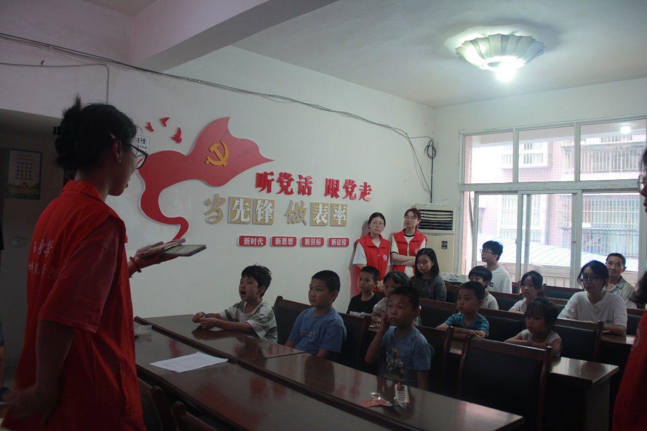 实践队员通过安全教育主题宣讲、防溺水知识竞答等多样化的形式,面向周边青少年儿童开展防溺水自护自救教育,并结合村内自然环境情况,因地制宜,给孩子们带来了一堂生动的防溺水知识课。本次活动中,实践队员们采取一对二、一对三的形式,引导小朋友积极回答问题,并给予积极回答问题的小朋友适当的奖励。活动结束后,一位小朋友对本次活动做出了积极评价:“今天真是愉快的一天,我不仅重新巩固了防溺水的安全知识,还学到了许多新颖有趣的内容。更令人兴奋的是,我还幸运地获得了一份奖品,打算带回家与弟弟一同分享这份喜悦。”
