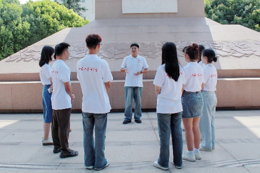 图16:实践队梁宽同学在纪念堂前进行公开宣讲