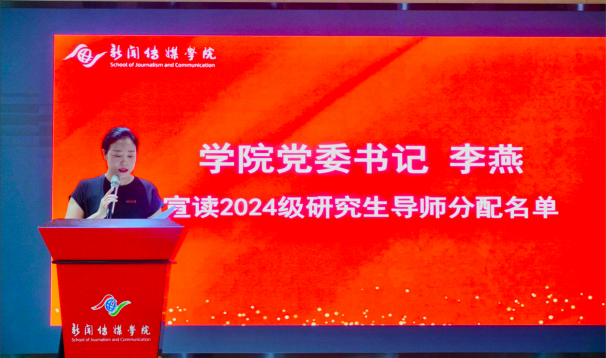 大会在庄严的国歌声中拉开帷幕。“师者如光,微以致远”,导师是研究生启学术新航、筑未来华章的引路人 。在大会上,学院党委书记李燕郑重宣读了新闻传媒学院2024级研究生新生导师分配名单,并鼓励新同学们在学术道路上耕耘不辍。