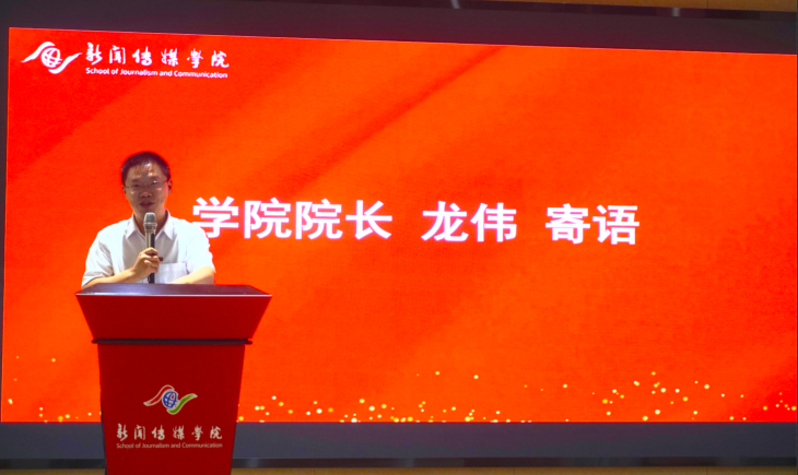 学院院长龙伟教授寄语新生,介绍了新闻传媒学院历史沿革与办学理念,让“开中外视野、立时代精神”的教育理念入脑入心。他希望新同学们培养和保持敏锐的眼光和强烈的好奇心,充分利用学院和学校教学、科研资源与平台提升个人能力,做心怀“国之大我”的有志青年、潜心求索的有识青年、敢为人先的有为青年。