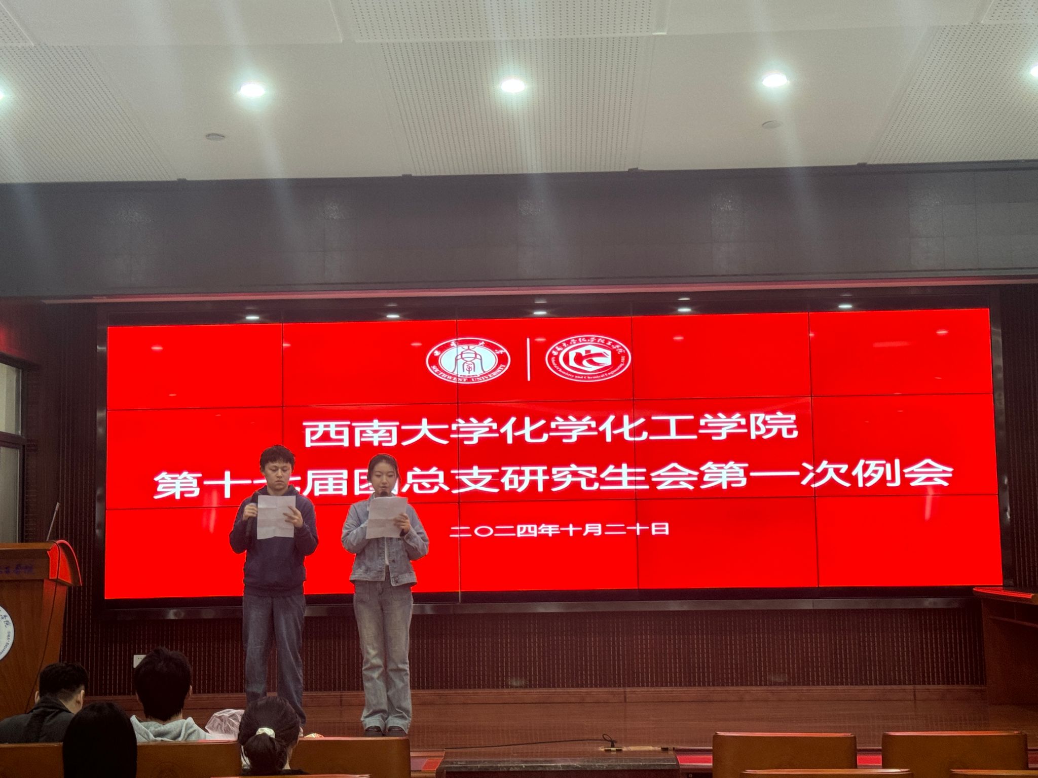 值此秋意渐浓之际,化学化工学院第十七届团总支研究生会首次全体例会于2024年10月20日下午15:00在化学化工学院B114顺利开展。会议旨在更好地发挥化学化工学院团总支研究生会的职能作用,回顾近期工作成果,探讨未来发展策略。同时欢迎新生力量加入新一届研会大家庭,增强成员间凝聚力,强化部门组织建设,致力于提升研究生会的团结力与服务能力。本次活动由团总支研究生会干事高海森与王雨铉主持。