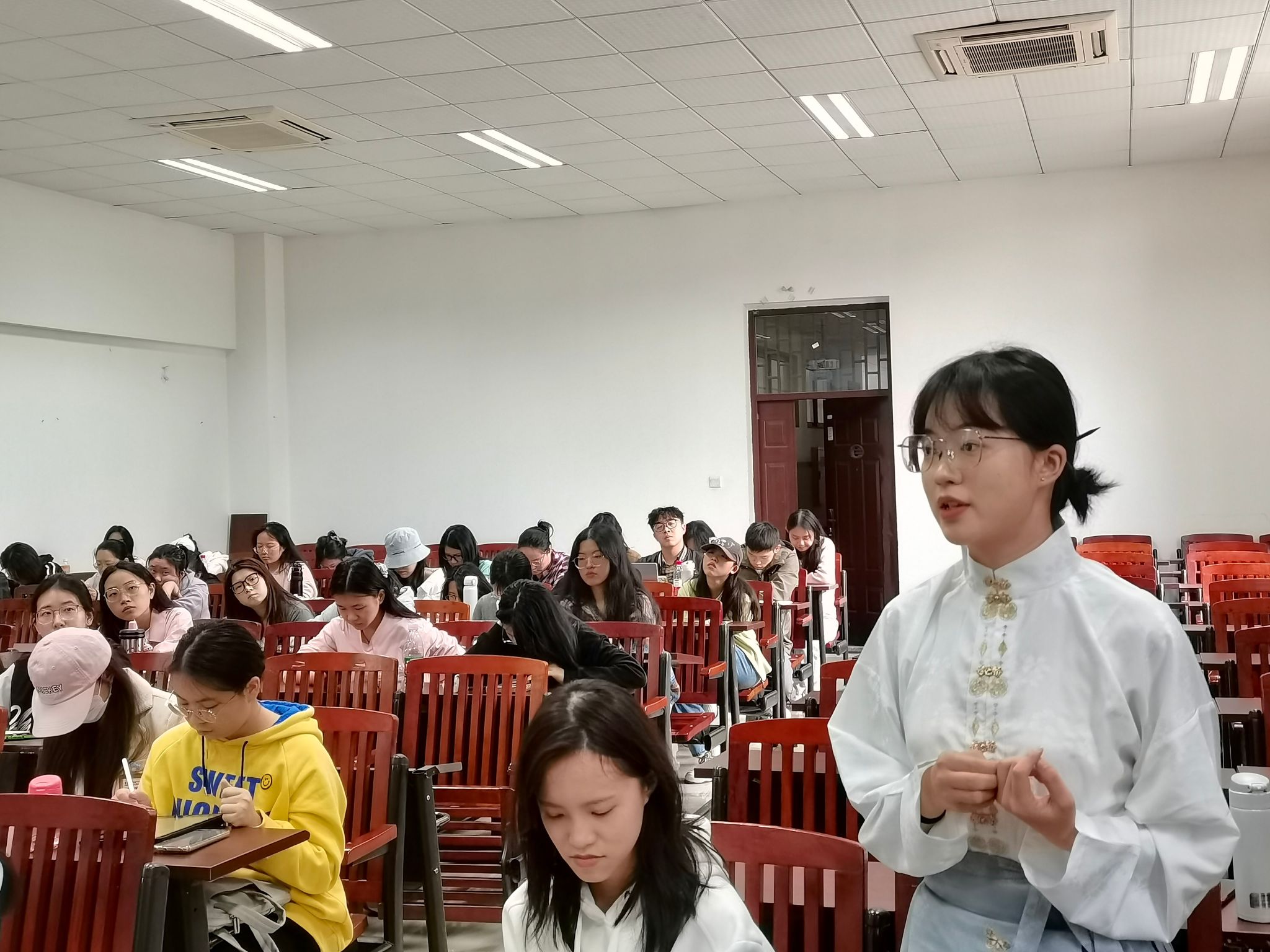 在自由讨论环节,同学们围绕鲁迅作品的文体界定、形象解读、读者阐释等话题积极提问,汤晶老师为此深入细致地解答,激发了广泛的思考。最后,汤晶老师对同学们的热情参与和认真的态度表示充分肯定。此次活动,不仅深化了同学们对鲁迅的理解,也启发了他们从不同角度重新审视文学作品。