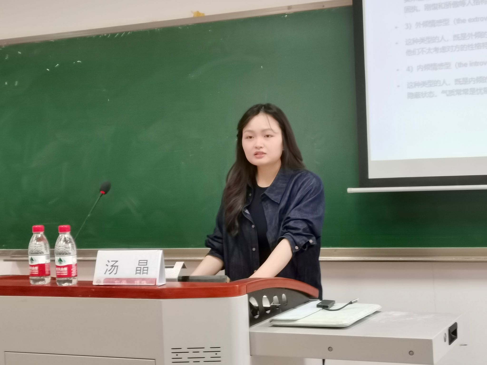 随后,汤晶老师以《重读鲁迅:荣格的参照视角》为基础,介绍荣格的心理类型理论和作者鲍凯琳的观点,并重点探讨了鲁迅精神世界的重要特征。她指出思想史、社会史、文化史、观念史四个文学研究视角的概念之异,并分析了鲁迅创作内在和外在两方面的驱动力,与当下国人的情感世界观照。