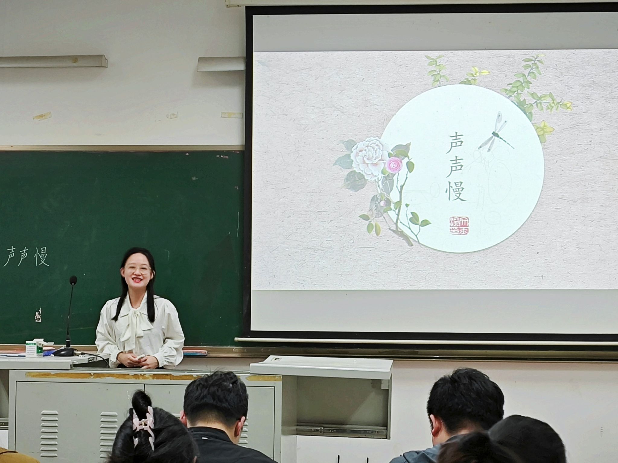 试讲过程中,各位选手充分展示了对《声声慢》课堂教学的理解,结合自己的专业从文本解读、情景创设、情感挖掘等各个角度对文章进行讲解。教学方法上,采用了经典的朗读法、讨论法和问答法等课堂教学方法提高同学们的课堂参与度,同时授课形式多样,方法新颖,如采用推文制作,短片拍摄等形式去丰富授课内容;教学内容上,从知人论世、文本细读,词眼、情感表达,意象分析等方面对文章进行剖析;课堂展示上,选手们教姿教态端正得体,声音洪亮语调抑扬顿挫,情感饱满充沛,精神积极向上,营造出了良好的课堂氛围。
