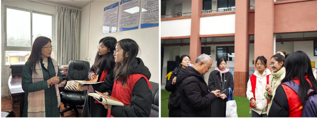 支教活动的第一天,实践队队员首先对宝顶镇实验小学的教导主任邓辉老师进行了深入采访。邓老师详细讲述了当地教育面临的严峻挑战,尤其在教材内容上,当前“下沉教材”现象,使得原本属于五六年级的知识点逐渐出现在低年级的课程中,这给一线教师备课和教学带来了不小的困难。邓老师强调,教材内容的调整是教育改革的一个重要方面,但需要充分考虑到乡村学校的教学资源和教师的适应能力。此外,邓老师还提到,由于农村地区孩子的学习基础和兴趣各不相同,许多学生在学习进度上存在差异,尤其是一些学生在课堂上的参与度较低,或因生活条件限制,未能得到足够的辅导和帮助。更为严峻的是,由于不少家长在外工作,学校和家庭的联系不够紧密,教师在学生课外辅导方面的负担进一步加重。面对这些挑战,邓老师和学校老师们始终坚守岗位,不断创新教学方法,在资源有限的情况下,最大限度地提升教学效能,努力帮助每一个学生克服困难,找到适合自己的学习方法。