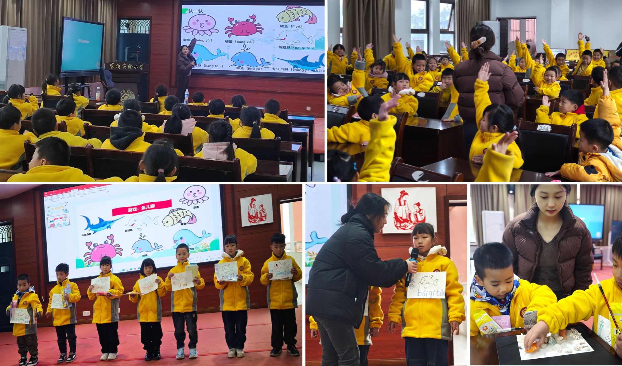 在支教活动的第二天,实践队员们开展了水产科普知识的教学活动。实践队通过PPT讲解和互动游戏,为学生们普及了长江水生生物的保护知识。授课中,队员们化身为“鲟鱼老师”,带领学生们认识长江流域濒临灭绝的水生生物,并通过生动的故事讲解让学生们认识环境保护的重要性,让保护环境的种子留在小朋友们的心里。课堂结束后,队员们化身小风车,与同学们玩起了“鱼儿蹲”游戏,帮助学生们在轻松愉快的氛围中巩固课堂上学到的水生动物知识。学生们积极参与,表现出浓厚的兴趣,并在游戏中获得了奖项。通过这种寓教于乐的方式,队员们不仅让学生们学到了知识,也培养了他们的环保意识。